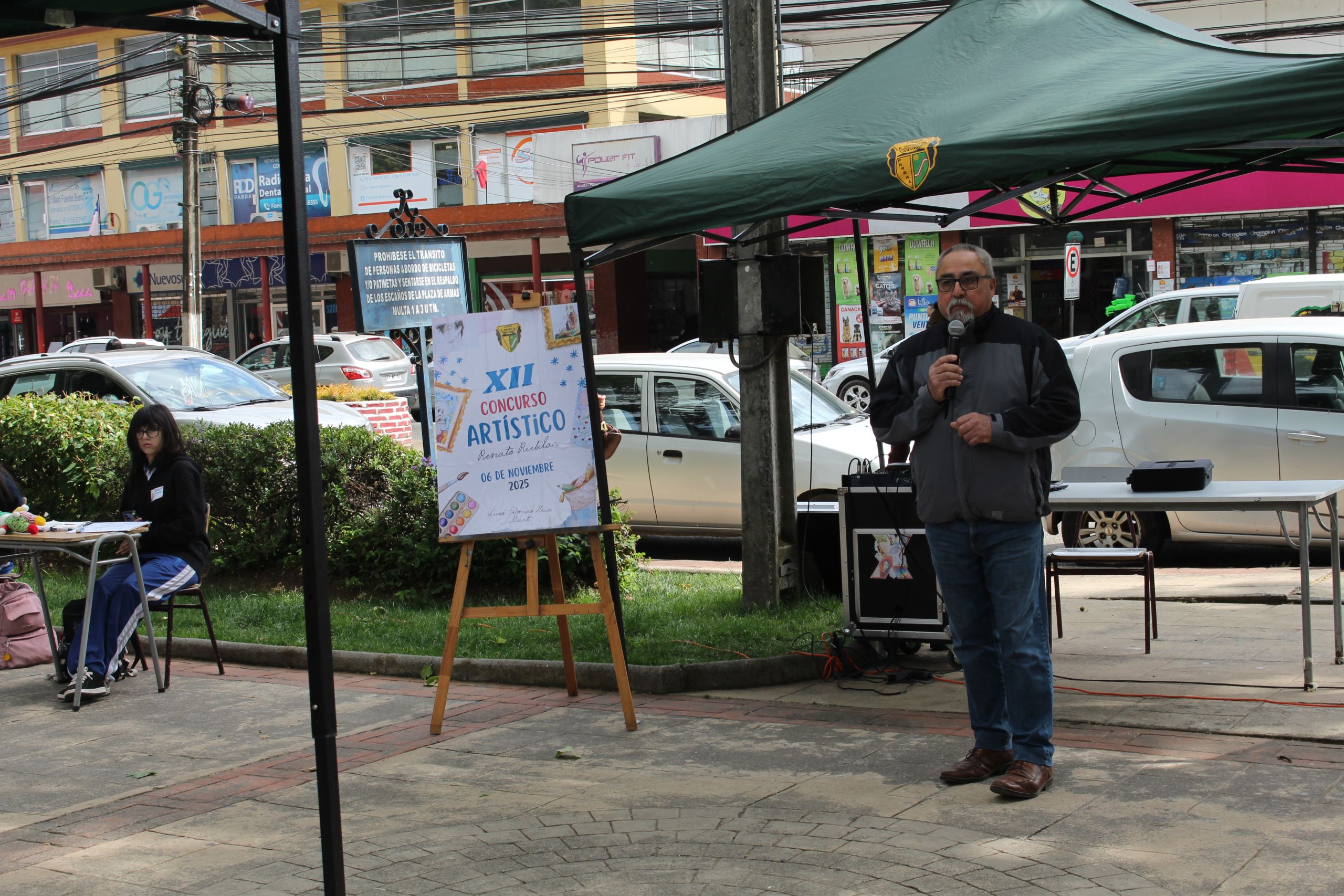 Durante la fría mañana del jueves 06 de noviembre desde las 9:30 hrs. Una delegación de 6 estudiantes se presenta al Concurso Artístico Escolar “Renato Rubilar” en su XII versión, donde alrededor de 20 colegios de nuestra comuna han sido invitados.